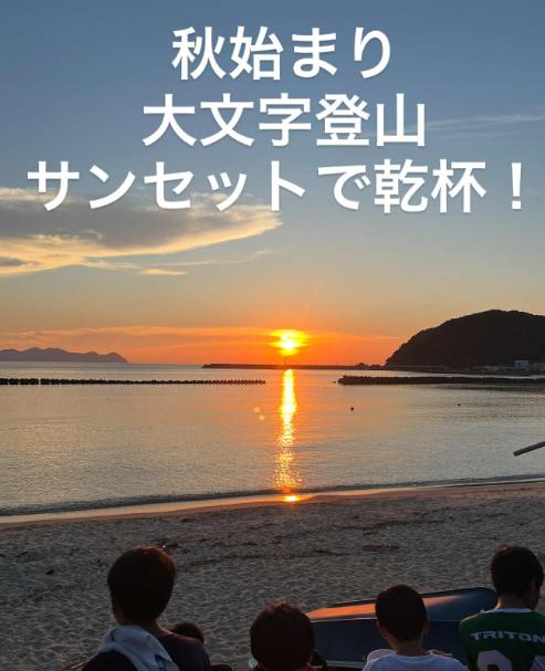 大文字火床から秋の夕日を見て美味しいお酒で乾杯!は曇りで中止!